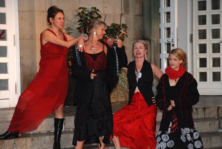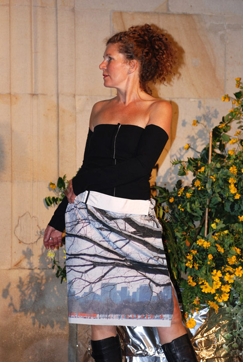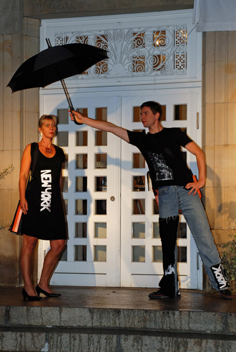 New York, New York - eine Homage an Audrey HepburnIn dieser Kollektion habe ich meine Leidenschaft für New York und Architektur sowie die Filmschauspielerin Audrey Hepburn - einer meiner Lieblingsfilme ist Frühstück bei Tiffany - miteinander verbunden. Unterschiedliche Techniken ziehen sich durch fünf Sequenzen der Kollektion: Siebdruck, Fotodruck, Drapieren und Recycling von alten Jacken zu neuen Lieblingsstücken. Die Kollektion wurde in einer getanzten Modenschau - dem Fashionwalk - während der Kulturnacht in Osnabrück auf der Außentreppe des Theaters Osnabrück aufgeführt. Eine Kooperation mit dem Tanztheater Stakkato, Osnabrück unter Choreografie von Erneste Junge. |