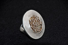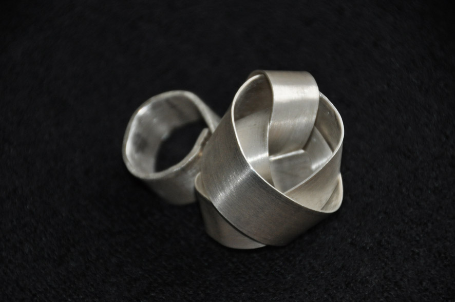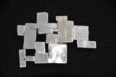 SchmuckArchitektur und Kunst - wie z.B. von Max Bill - sowie die Veredlung von Gebrauchsgegenständen - wie Fahrradschläuche, Stoffreste oder Buttons - in Kombination mit Silber inspirieren mich zu großteiligen Schmuckstücken. Schmuck mit zeitlosem Objektcharakter. |